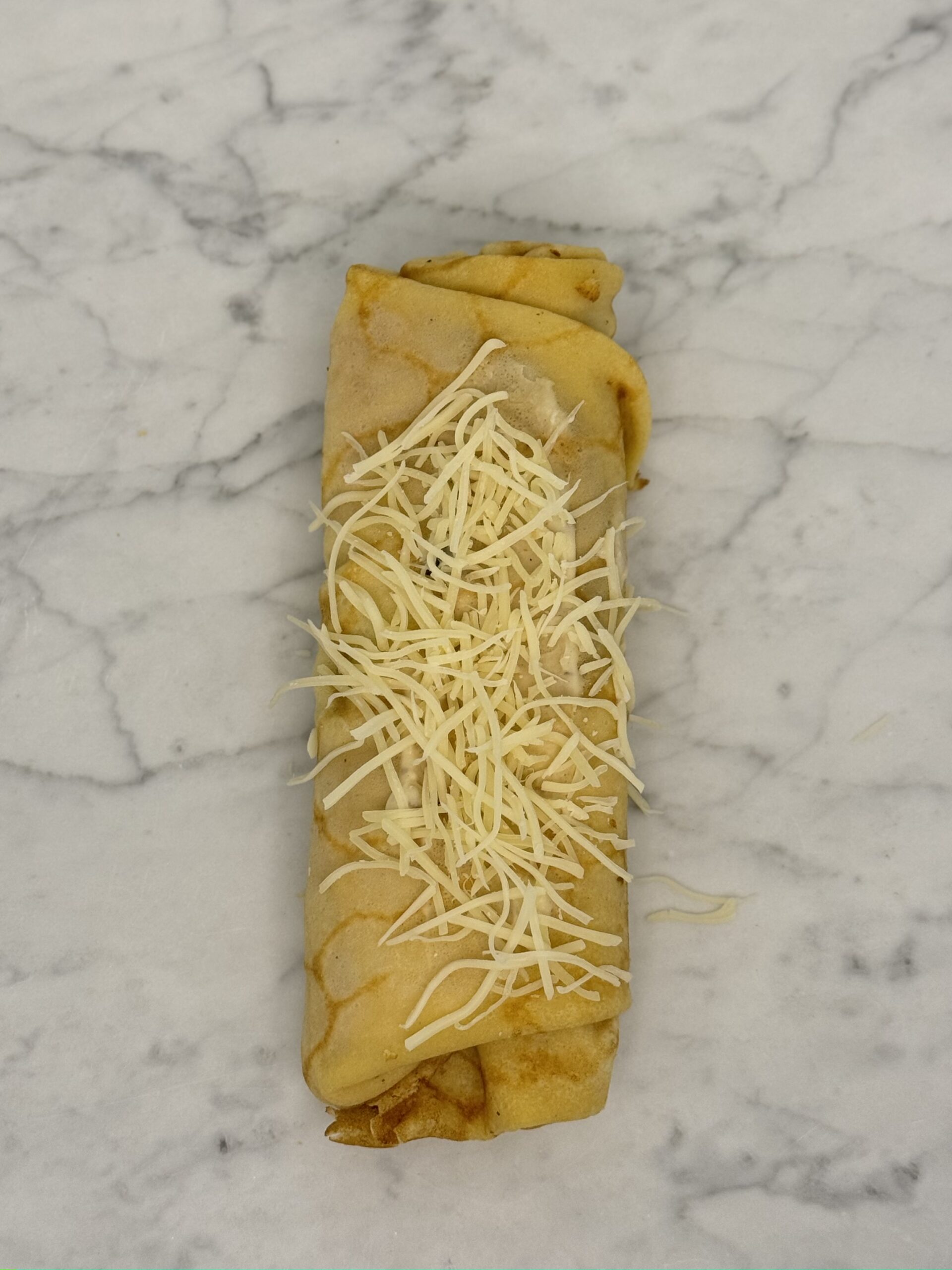 Jambon 22% (origine France), LAIT, CREME, CREPE (OEUFS, LAIT, GLUTEN) 19%, bouillon, BEURRE, FARINE (GLUTEN), poivre, muscade.